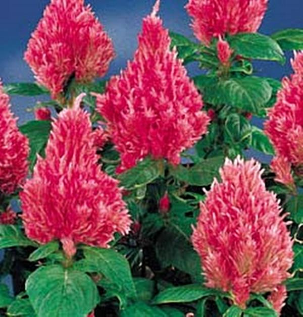 Plumosa dwarf, twice the flower power of similar types, plumes are 5" wide by 8" tall, heat and drought tolerant.